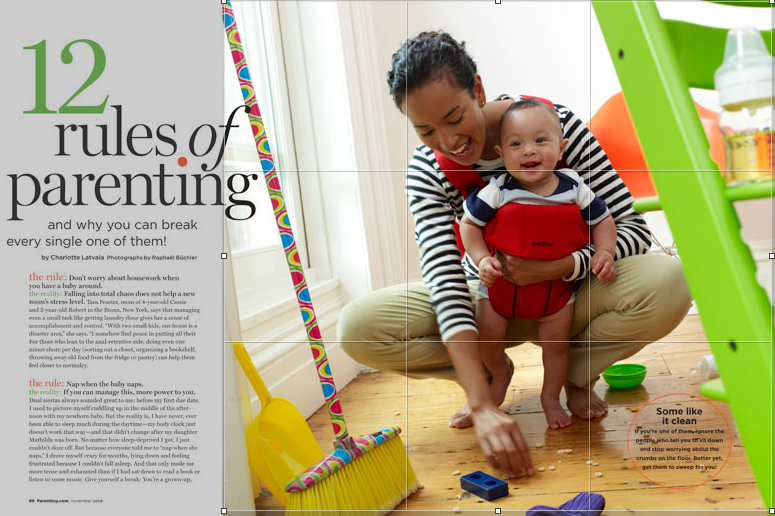 Overall, this magazine spread shows a good example of what the target audience is looking for. It has a good way of organizing while still looking fun and approachable for moms and children. I enjoy the photo they used as well as the different fonts.